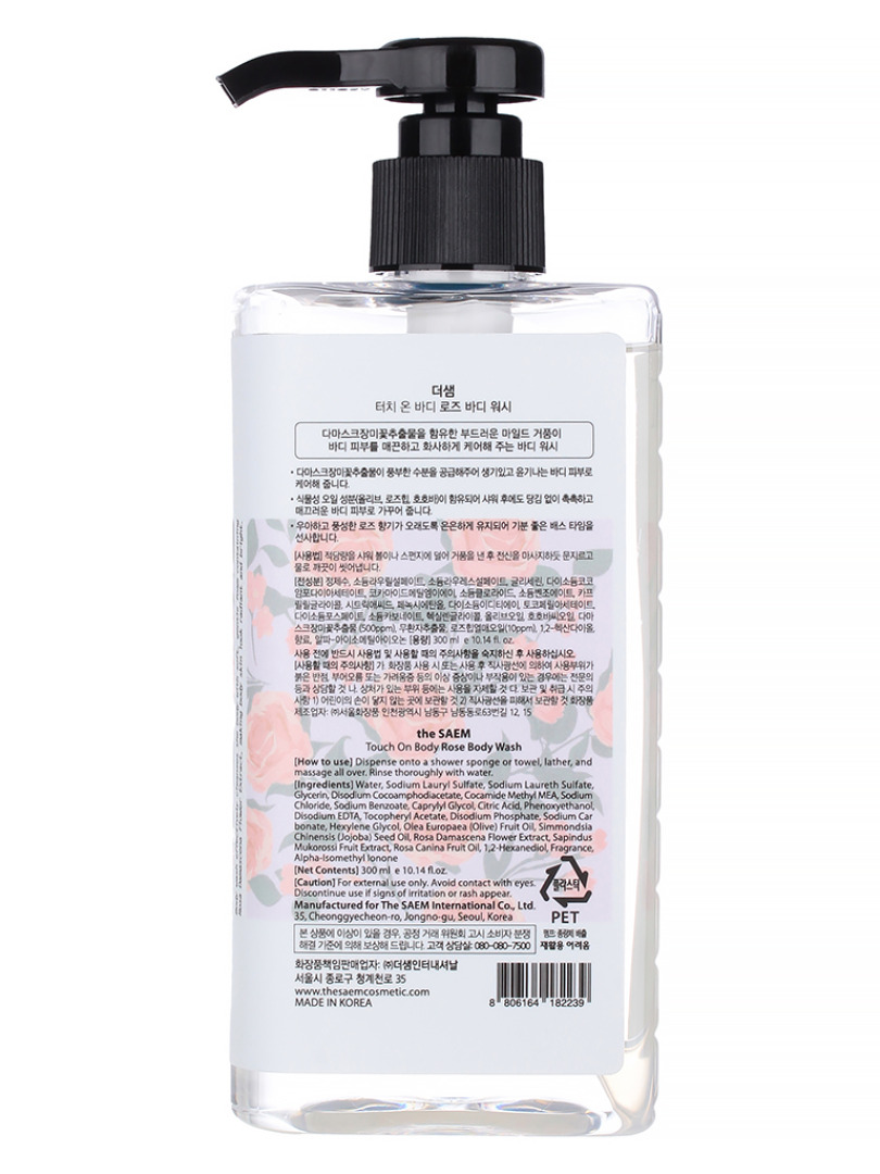 Изг-ль: THE SAEM INTERNATIONAL CO.LTD., КОРЕЯ, РЕСПУБЛИКА, 10F, 35, Cheonggyecheon-ro, Jongno-gu, Seoul. Гель для душа с экстрактом розы. Содержит оливковое масло, масло шиповника и масло жожоба, чтобы сохранить кожу гладкой и увлажненной после душа. Экстракт дамасской розы омолаживает, разглаживает, повышает эластичность и упругость кожи, придает ровный и красивый цвет коже. Увлажняет сухую, обезвоженную кожу. Способ применения: нанести на губку и взбить пену, распределить ее по коже и помассировать. Смыть.