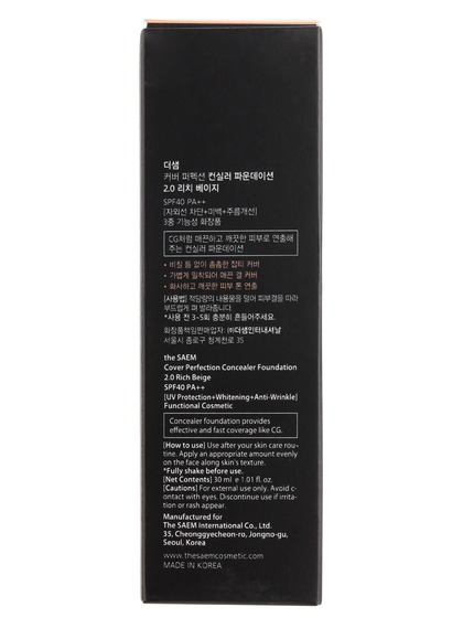 Изг-ль: THE SAEM INTERNATIONAL CO.LTD., КОРЕЯ, РЕСПУБЛИКА, 10F, 35, Cheonggyecheon-ro, Jongno-gu, Seoul. Тональный крем-консилер равномерно распределяется по коже лица, не подчеркивает шелушения, создает полуматовый финиш. Маскирует возрастные морщинки, припухлости, мешки и темные круги под глазами, покраснения, пигментацию и др. несовершенства. Содержит покрывающие частицы METAGRAM, которые наносятся тонким и равномерным слоем по текстуре кожи, позволяя макияжу держаться в течение длительного времени, не ощущая тяжести на лице. Способ применения: нанести консилер на зону под глазами и другие области, требующие корректировки.