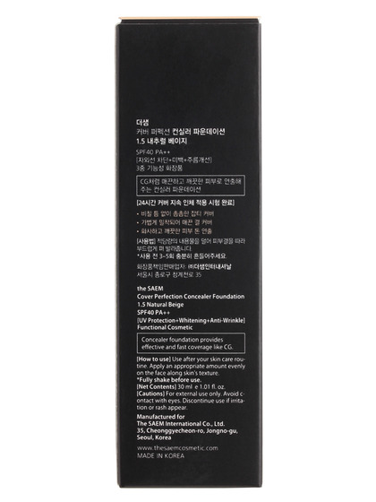 Изг-ль: THE SAEM INTERNATIONAL CO.LTD., КОРЕЯ, РЕСПУБЛИКА, 10F, 35, Cheonggyecheon-ro, Jongno-gu, Seoul. Тональный крем-консилер равномерно распределяется по коже лица, не подчеркивает шелушения, создает полуматовый финиш. Маскирует возрастные морщинки, припухлости, мешки и темные круги под глазами, покраснения, пигментацию и др. несовершенства. Содержит покрывающие частицы METAGRAM, которые наносятся тонким и равномерным слоем по текстуре кожи, позволяя макияжу держаться в течение длительного времени, не ощущая тяжести на лице. Способ применения: нанести консилер на зону под глазами и другие области, требующие корректировки.