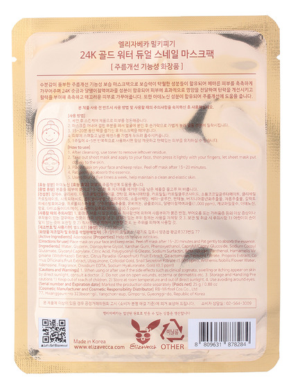 Изг-ль: INTERKOS Co.,Ltd., 62, Namdongseo-ro 362beon-gil, Namdong-gu, Incheon, Республика Корея. Антивозрастная маска с содержанием 24k золота и фильтрата секрета улитки (1000ppm). Маска расчитана на эффективное преображение кожи, склонной к появлению морщин. Заботится о проблемах кожи. Обильно увлажняет и регенирирует. Подтягивает кожу, устраняет следы усталости. Делает кожу сияющей изнутри. Устраняет раздражения. Имеет легкий осветляющий эффект, за счет чего выравнивается тон кожи. Способ применения: после умывания подготовьте кожу тонером. Наденьте маску. Снимите через 20-30 мин. Оставшуюся эссенцию оставьте до полного высыхания. (4 -5 раза в неделю)