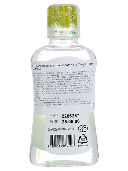 Изг-ль: Dong-A Pharmaceutical Co., Ltd., 64, Cheonho-daero, Dongdaemun-gu, Seoul, Корея. Свидетельство о государственной регистрации (СоГР) № KG.11.01.09.014.R.000539.01.23 от 27.01.2023 г. Ополаскиватель содержит активные вещества, направленные на поддержание здоровья всей ротовой полости. Предотвращает воспаление десен, эффективен для профилактики зубного камня. Способ применения: Используйте каждый день после чистки зубов утром и вечером. Налейте 10-15 мл в стакан и полощите полость рта в течение 30 секунд, затем сплюньте.