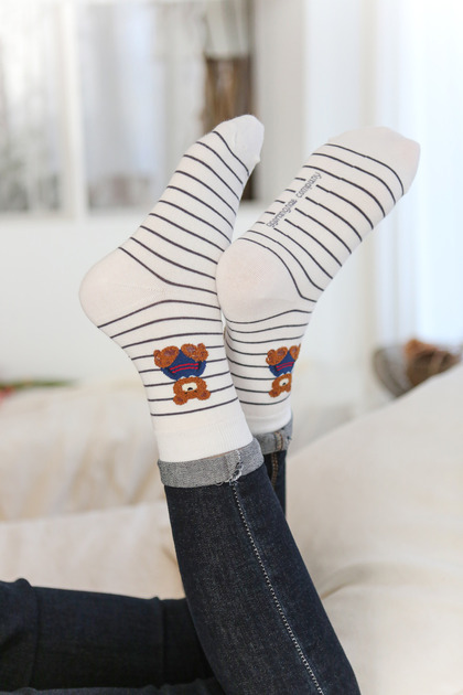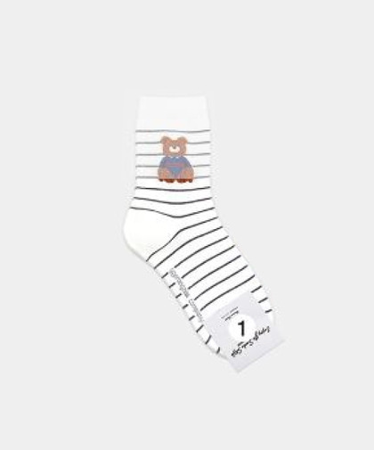 GGRN B TYPE(W-L-200) Носки женские длинные, белые в полоску с принтом медведь, размер 35-39, B TYPE(W-L-200-01)ADULTS