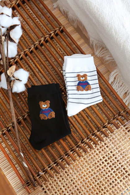 GGRN B TYPE(W-L-200) Носки женские длинные, черные с принтом медведь, размер 35-39, B TYPE(W-L-200-05)ADULTS