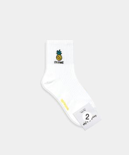 GGRN B TYPE(W-L-040) Носки женские длинные, белые с принтом ананас, размер 35-39, B TYPE(W-L-040-02)ADULTS