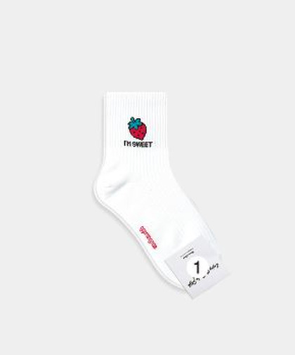 GGRN B TYPE(W-L-040) Носки женские длинные, белые с принтом клубника, размер 35-39, B TYPE(W-L-040-01)ADULTS