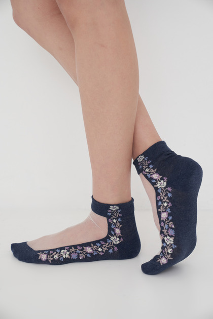 GGRN A TYPE(W-S-055) Носки женские короткие, синие с принтом цветы, размер 35-39, A TYPE(W-S-055-03)ADULTS