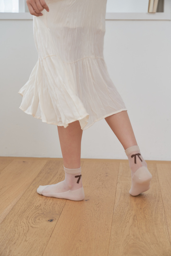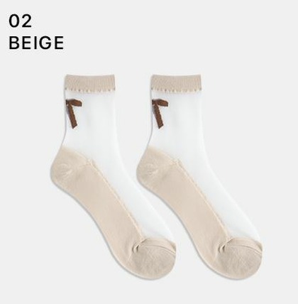 GGRN A TYPE(W-S-049) Носки женские капроновые, бежевые с принтом бант, размер 35-39, A TYPE(W-S-049-02)ADULTS