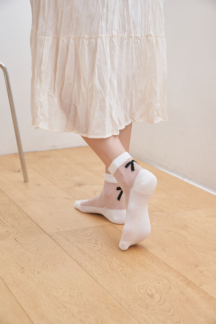 GGRN A TYPE(W-S-049) Носки женские капроновые, белые с принтом бант, размер 35-39, A TYPE(W-S-049-01)ADULTS