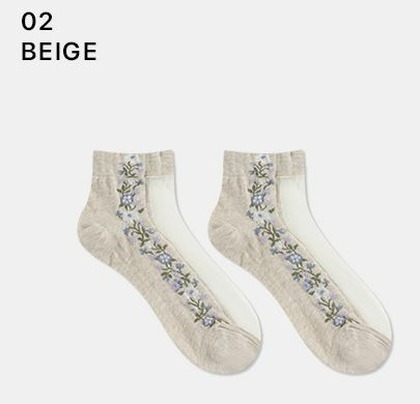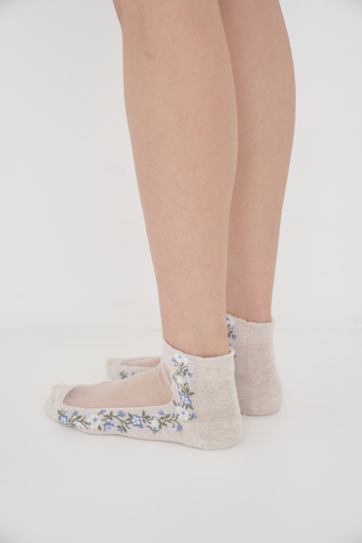 GGRN A TYPE(W-S-055) Носки женские короткие, бежевые с принтом цветы, размер 35-39, A TYPE(W-S-055-02)ADULTS