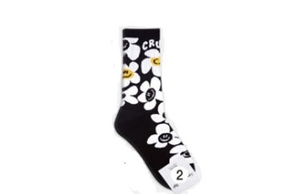 GGRN B TYPE(W-L-326) Носки женские длинные, белые с принтом цветок, размер 35-39, B TYPE(W-L-326-01)ADULTS