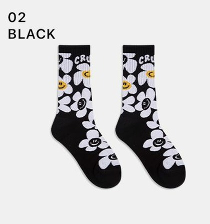 GGRN B TYPE(W-L-326) Носки женские длинные, черные с принтом цветок, размер 35-39, B TYPE(W-L-326-02)ADULTS