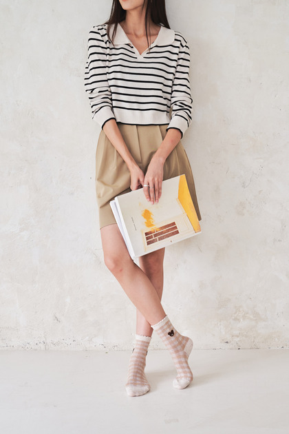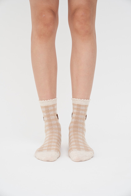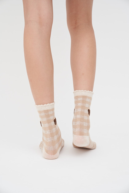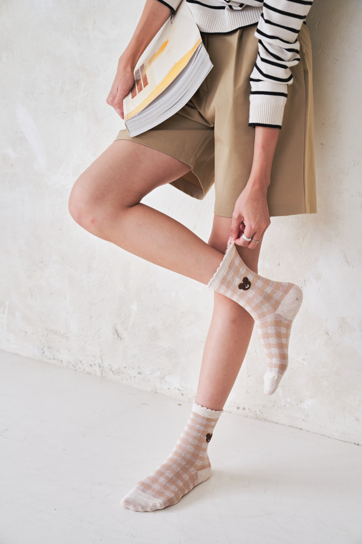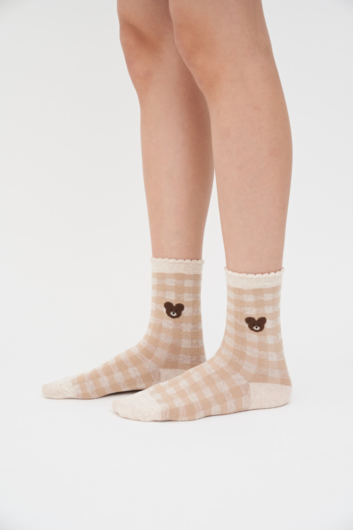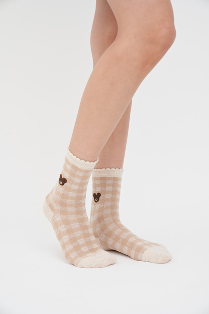 GGRN B TYPE(W-L-321) Носки женские длинные, бежевые с принтом клетка/мишка, размер 35-39, B TYPE(W-L-321-01)ADULTS