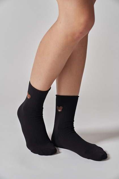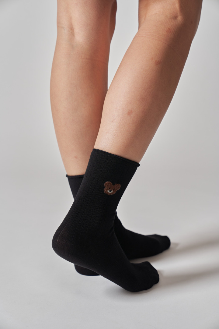 GGRN B TYPE(W-L-330) Носки женские длинные, черные с принтом медведь, размер 35-39, B TYPE(W-L-330-03)ADULTS