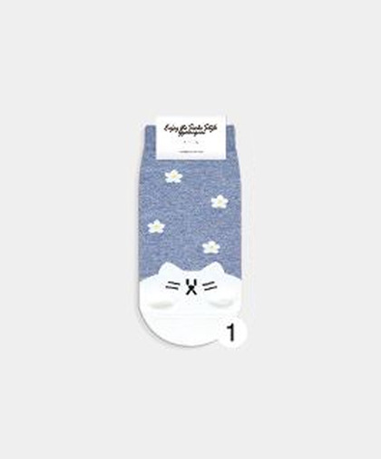 GGRN A TYPE(W-C-019) Носки женские короткие, голубые с принтом кошка, размер 35-39, A TYPE(W-C-019-01)ADULTS