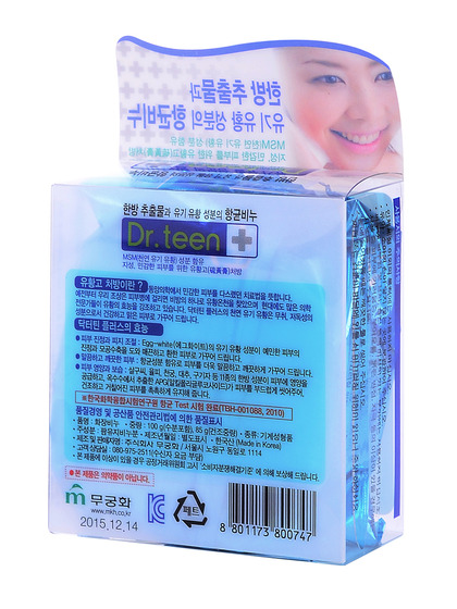 Изготовитель: «MUKUNGHWA CO. LTD. », Южная Корея, NOWON-GU, DONGIL-RO 114 BONJI , SEOUL. 11 растительных ингредиентов (семена абрикоса, скорлупа каштана, цнидиум, ююб и виноградная лоза) глубоко очищают кожу от угревой сыпи и устраняют пятна, покраснения и прыщи. Компонент APG, полученный из кукурузы, сохраняет кожу увлажненной и мягкой. Способ применения: с помощью воды вспеньте мыло, нанесите на кожу, после чего тщательно смойте обильным количеством воды. Состав: мыльная основа, яичный порошок, децилполиглюкозид, экстракты корейских трав, тальк, оксид цинка, тетранатриевой этидронат, триклозан, метил сульфонил метан, диоксид титана, BHT, ароматизаторы.