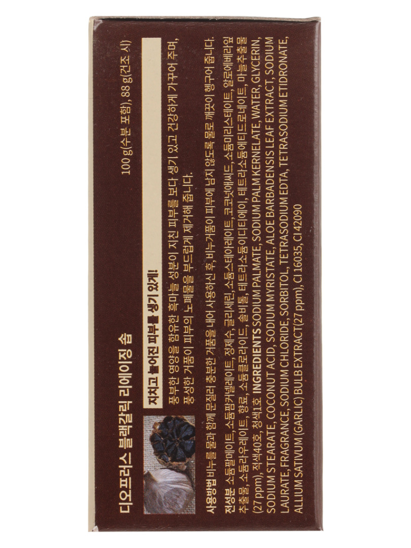 Изготовитель: GREENCOS Co.Ltd., Республика Корея, 64-30, Hagunsandan 1-ro, Yangchon-eup, Gimpo-si, Gyeonggi-do. Мыло c черным чесноком создано для качественной очистки и ухода за взрослой кожей. Прекрасно справляется с различными проблемами кожи, оживляют кожу и делают ее более гладкой. Растворимый коллаген, эластин и гиалуроновая кислота увлажняют, подтягивают и разглаживают кожу. Применение: Предварительно взбейте мыло в плотную пену с помощью сеточки. Наложите пену на лицо. Очистите лицо, двигаясь по массажным линиям с помощью пены. После смойте прохладной или теплой водой.
