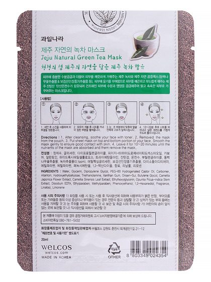 Изготовитель: Welcos Co., LTD., 21-12, Toegyegongdan 1-gil, Chuncheon-si, Gangwon-do, Республика Корея. Экстракт зеленого чая эффективно успокаивает кожу, насыщает ее влагой, уменьшает воспаления, а также сужает поры и снимает шелушение. Комплекс эффективно подтягивает кожу, разглаживает морщинки и предотвращает преждевременное старение кожи, придавая ей здоровое сияние. Для всех типов кожи, особенно для жирной и чувствительной кожи. Способ применения: на очищенную кожу лица нанесите маску. Снимите через 20 минут. Смывать эссенцию не нужно. Оставшуюся на лице эссенцию аккуратно разгладьте пальцами по косметическим линиям для лучшего впитывания в кожу.
