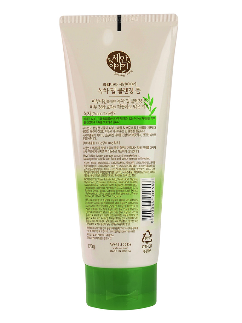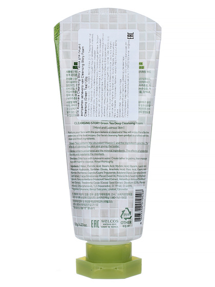 Изготовитель: Welcos Co., LTD., КОРЕЯ, РЕСПУБЛИКА, 21-12, Toegyegongdan 1-gil, Chuncheon-si, Gangwon-do. Пенка глубоко очищает поры от загрязнений и макияжа, успокаивает кожу, склонную к появлению раздражений, оказывает антибактериальное, противовоспалительное и тонизирующее действие. Экстракт зеленого чая - это источник витаминов А, С, Е и полифенолов. Они оказывает мощное антиоксидантное действие. После очищения такой пенкой кожа достаточно увлажнена, уменьшились раздражения и воспаления. Благодаря мягкой консистенции пена очень деликатно очищает кожу.
