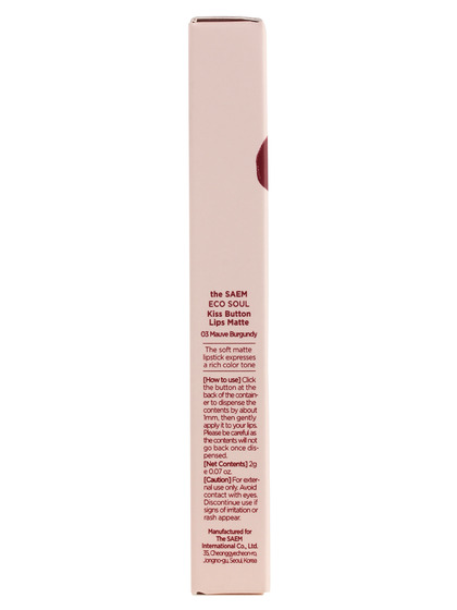 СМ Lip Помада для губ матовая the SAEM Eco Soul Kiss Button Lips Matte 03 Mauve Burgundy