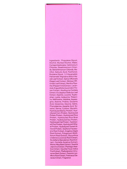 Propylene Glycol, Alcohol, Myristyl Alcohol, Water, Cyclopentasiloxane, Cetrimonium Chloride, Steartrimonium Chloride, Behentrimonium Chloride, Fragrance, Menthol, Salicylic Acid, Panthenol, Butylene Glycol, 1,2-Hexanediol, Hamamelis Virginiana (Witch Hazel), Leaf Extract", Salvia Officinalis (Sage) Leaf Extract, Melissa Officinalis Leaf Extract, Mentha Piperita (Peppermint) Extract, "Lavandula Angustifolia (Lavender), Flower Extract", Houttuynia Cordata Extract, Eucalyptus Globulus Leaf Extract, Arginine, Leucine, Tryptophan, Lysine, Isoleucine, Threonine, Methionine, Histidine, Asparagine, Alanine, Proline, Glutamic Acid, Glutamine, Glycine, Valine, Phenylalanine, Aspartic Acid, Tyrosine, Serine, Cystine, Glycerin, Hydrolyzed Barley Protein, Hydrolyzed Corn Protein, Hydrolyzed Potato Protein, Hydrolyzed Rice Protein, Hydrolyzed Rice Bran Protein, Hydrolyzed Soy Protein, Hydrolyzed Oat Protein, Hydrolyzed Pea Protein, Hydrolyzed Wheat Protein, Hydrolyzed Sweet Almond Protein, Sophora Flavescens Root Extract, Angelica Gigas Root Extract, Polygonum Multiflorum Root Extract, "Glycyrrhiza Uralensis (Licorice) Root, Extract", Scutellaria Baicalensis Root Extract, Centella Asiatica Extract, Morus Alba Bark Extract, Swertia Japonica Extract, Plantago Asiatica Extract, Opuntia Ficus-Indica Fruit Extract, Phellodendron Amurense Bark Extract, Paeonia Lactiflora Root Extract, Portulaca Oleracea Extract