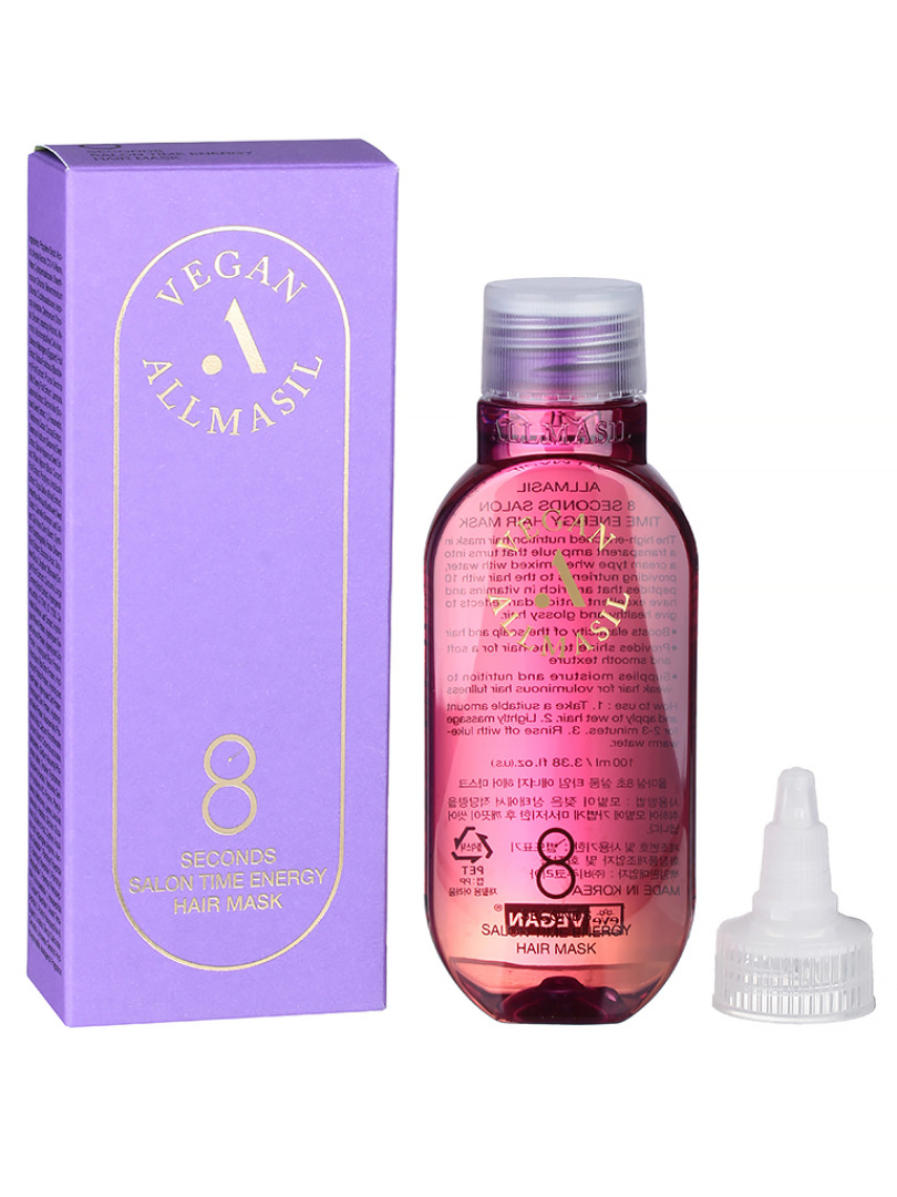 Изг-ль: BIJU Korea Co., Ltd. Корея, Республика, 1st floor, Gajeong-ro 37 beon-gil 4, Seo-gu, Incheon. Питательная маска ALLMASIL 8 Seconds Salon Time Energy Hair Mask (100 мл) — это интенсивный уход для сухих, жестких и лишенных блеска волос.