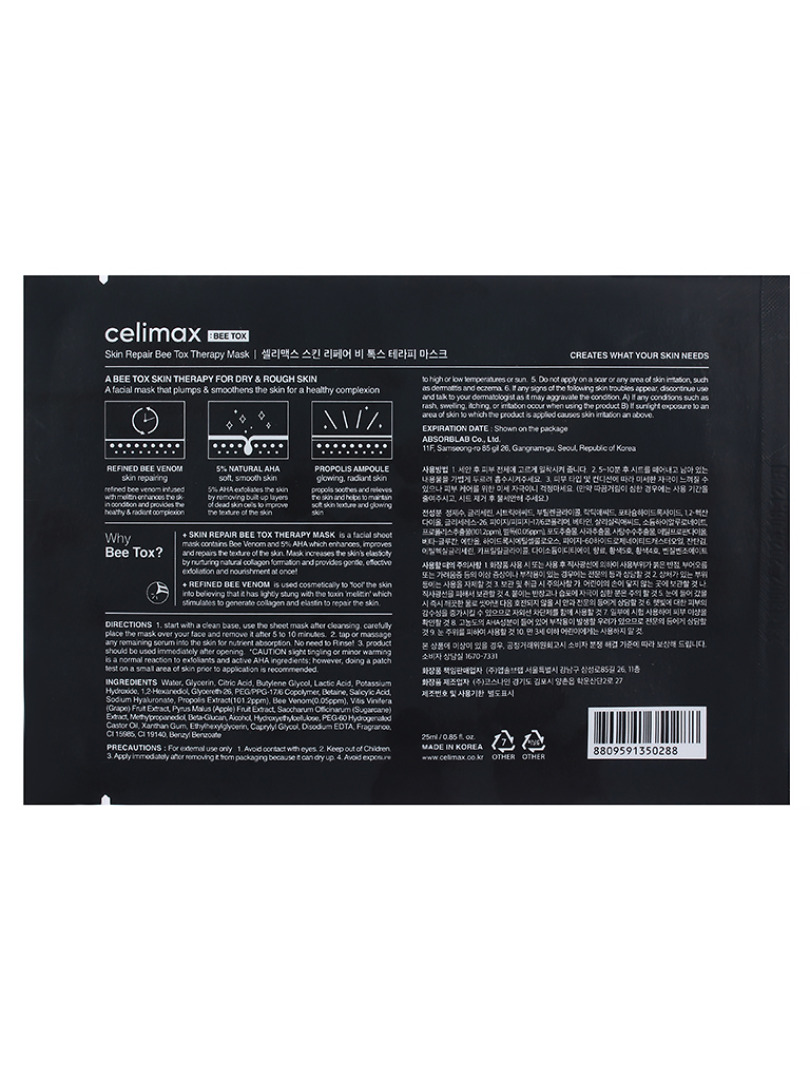 CLM Mask Маска тканевая для лица с прополисом и пчелиным ядом celimax Skin Repair Bee Tox Therapy Mask