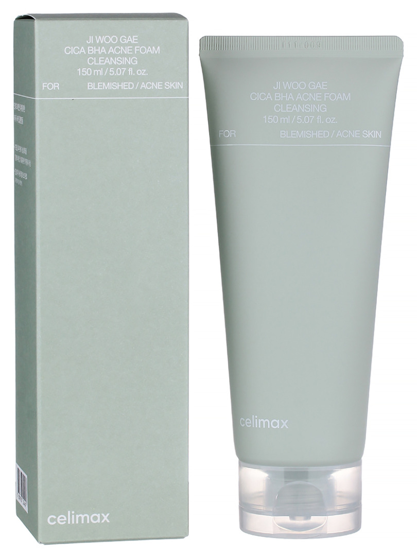 CLM Cleansing Пенка для лица очищающая с BHA-кислотой и центеллой азиатской celimax Ji Woo Gae Cica BHA Acne Foam Cleansing 150ml