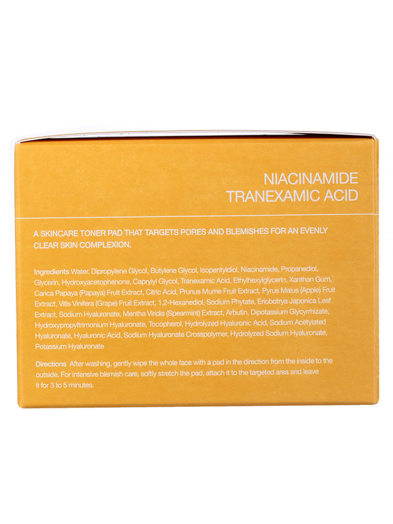 Изг-ль: ABSORBLAB Co., Ltd., 11F, Samseong-ro 85 gil 26, Gangnam-gu, Seoul, Республика Корея. Осветляющие тонер-пэды мягко удаляют ороговевшие частички кожи и придают коже здоровое сияние, имеют осветляющий эффект и справляются с постакне, пигментацией, отшелушивают омертвевшие клетки. В состав средства входят транексамовая кислота, ниацинамид, Melazero V2 и т.д. Способ применения: После очищения протрите диском лицо от внутренней стороны лица к внешней. В качестве интенсивного ухода: нанесите пэды локально на зону с повышенной пигментацией или расширенными порами, оставьте на 3-5 минут и удалите диск.