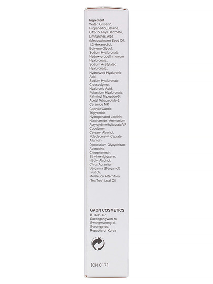 Изг-ль: GAON COSMETICS, B-1605, 67, Saebitgongwon-ro, Gwangmyeong-si, Gyeonggi-do, Республика Корея. Антивозрастной крем для кожи вокруг глаз с пептидами. Средство интенсивно и надолго увлажняет кожу, питает, разглаживает и смягчает её, замедляет процессы старения, сокращает количество и глубину морщин и тонких линий, способствует уменьшению отёчности. Ключевыми активными компонентами формулы являются: комплекс из 7 видов гиалуроновой кислоты Moist-7-Complex, аденозин, аллантоин, ниацинамид, керамиды NP. Способ применения: равномерно наносите утром и вечером небольшое количество крема на чистую тонизированную кожу вокруг глаз.