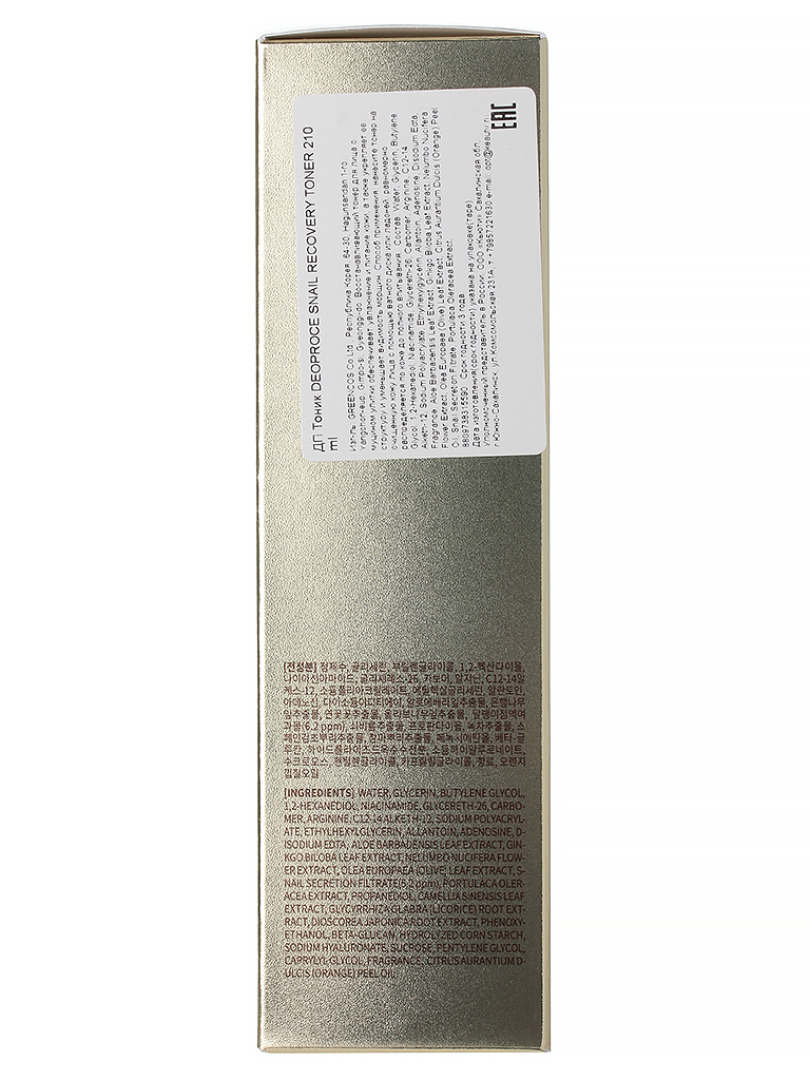 Изготовитель: GREENCOS Co.Ltd., Республика Корея, 64-30, Hagunsandan 1-ro, Yangchon-eup, Gimpo-si, Gyeonggi-do. Глубоко увлажняет и восстанавливает поврежденную структуру кожи. Сужает поры, очищает и ускоряет регенерацию. Одним из ингредиентов тонера является муцин, то есть вытяжка из слизи улитки, обладающая сильным омолаживающим действием. При регулярном использовании улучшает кровообращение и выравнивает тон. Продукт отлично готовит кожу к воздействию макияжа. Он подходит для всех типов кожи. Муцин – это экстракт слизи улитки. Он прекрасно работает как на поверхности кожи, так и в ее глубоких слоях. Обеспечивает насыщение кожи кислородом.