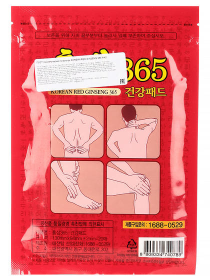 ПЛСТ Пластырь для тела с красным женьшенем KOREAN RED GINSENG 365 PAD набор 20шт