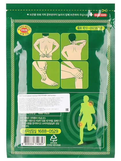 Изг-ль: Daejeon Top Industry, Республика Корея,307, Dongdaejeon-ro, Dong-gu, Daejeon. Пластырь облегчает боль и снимает воспаление в суставах. Благодаря входящему в состав экстракту опунции, пластырь содержит природные компоненты, которые облегчают боль и снимают воспаление в суставах и мышцах. Ментол дарит ощущение свежести и комфорта благодаря охлаждающему действию, которое расслабляет напряжённые участки. Применение: очистите кожу и дайте ей высохнуть. Прикрепите пластырь к больному участку. Спустя 4 часа снимите, если необходимо, повторите. *Меры предосторожности: не клеить пластырь на повреждённую кожу, при раздражении прекратите использование и промойте водой,избегайте попадания в глаза, храните в недоступном для детей месте, не используйте повторно.