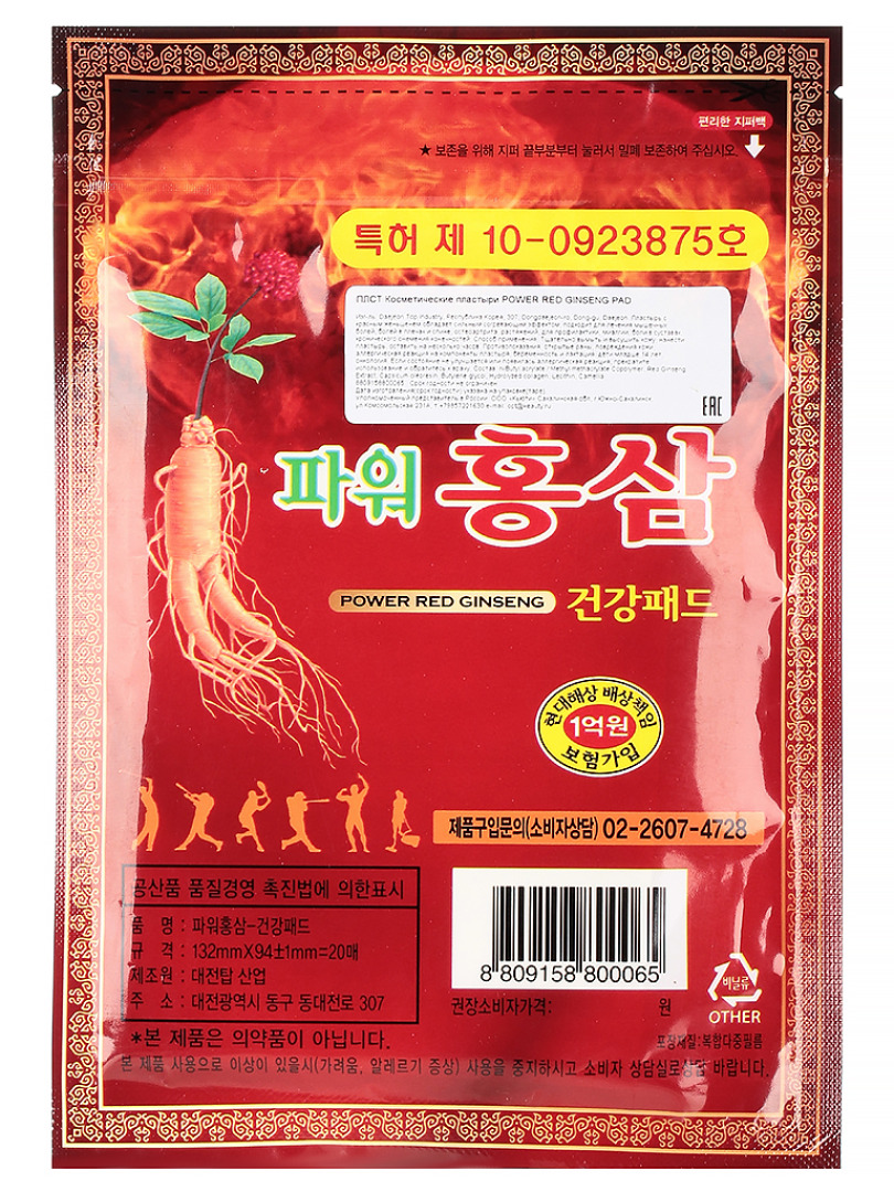 ПЛСТ Пластырь для тела с красным женьшенем POWER RED GINSENG PAD набор 20шт