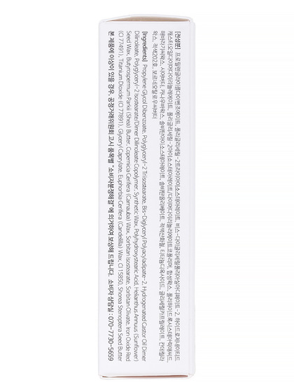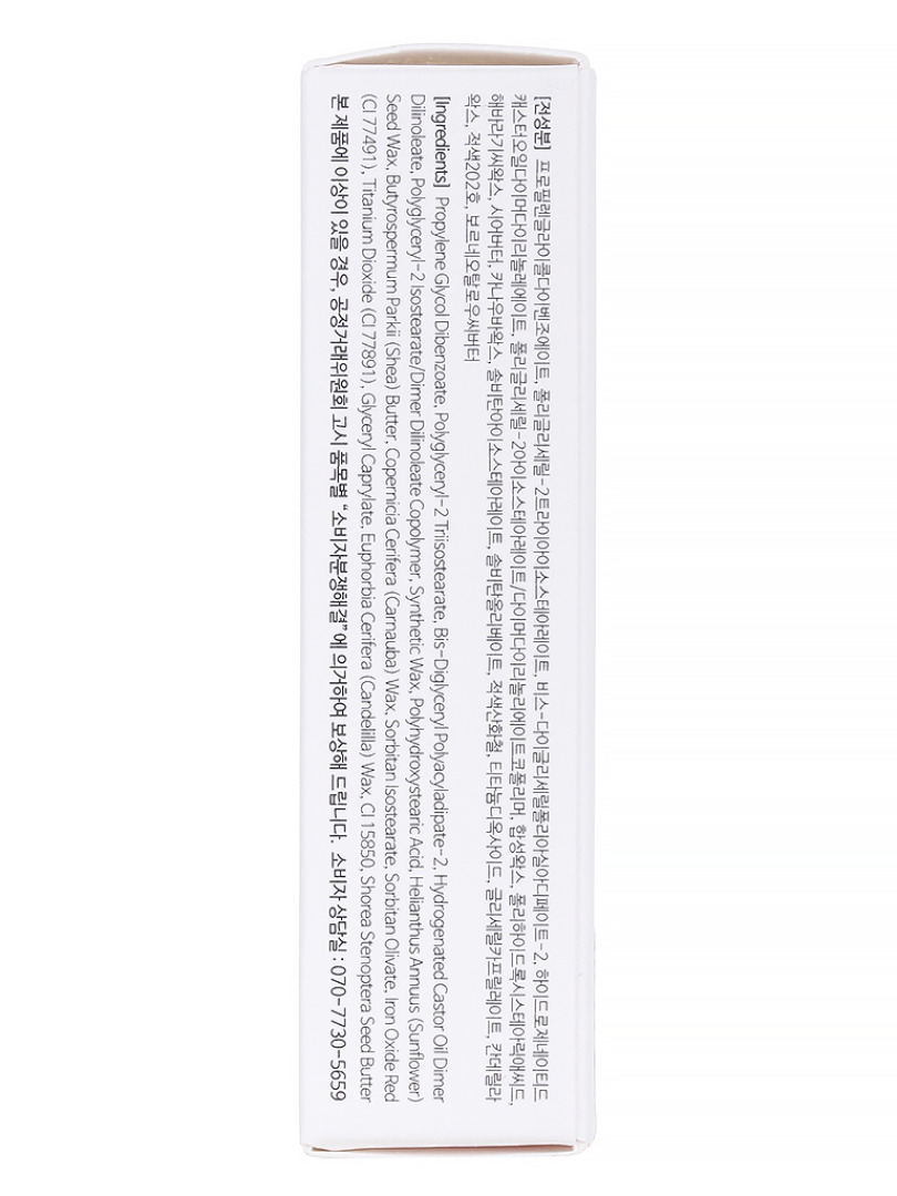 Propylene Glycol Dibenzoate, Polyglyceryl-2 Triisostearate, Bis-Diglyceryl Polyacyladipate-2, Hydrogenated Castor Oil Dimer Dilinoleate, Polyglyceryl-2 Isostearate/Dimer Dilinoleate Copolymer, Synthetic Wax, Polyhydroxystearic Acid, Helianthus Annuus (Sunflower) Seed Wax, Butyrospermum Parkii (Shea) Butter, Copernicia Cerifera (Carnauba) Wax, Sorbitan Isostearate, Sorbitan Olivate, Iron Oxide Red (CI 77491), Titanium Dioxide (CI 77891), Glyceryl Caprylate, Euphorbia Cerifera (Candelilla) Wax, CI 15850:1, Shorea Stenoptera Seed Butter