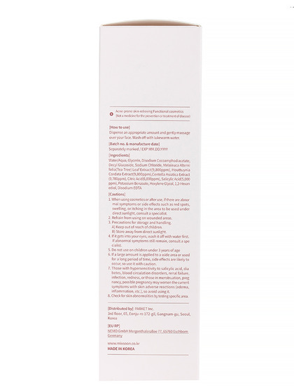Изготовитель: Parket Inc., 3rd floor, 65, Eonju-ro 218-gil, Gangnam-gu, Seoul, Республика Корея. Пенка мягко очищает кожу лица, не вызывая сухости. Средство с натуральными экстрактами чайного дерева, хауттюйнии и центеллы азиатской дарит коже оптимальное увлажнение и успокаивает её. Подходит для чувствительной, раздраженной, проблемной и склонной к появлению акне кожи. Способ применения: распределите необходимое количество пенки по коже лица массирующими движениями, затем смойте пенку водой.
