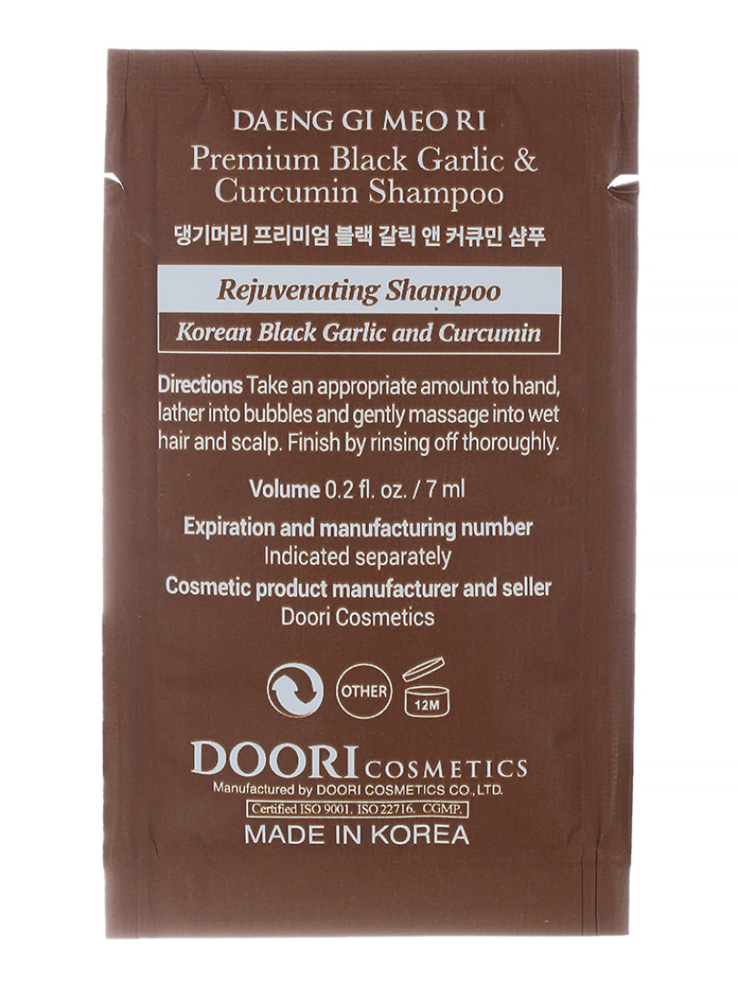 ДГМ Black Garlic and Curcumin Шампунь пробник DAENG GI MEO RI Black Garlic and Curcumin Shampoo 7ml