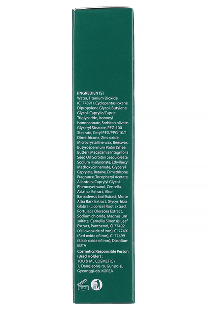 Изг-ль: You&Me Cosmetic, Корея, Республика, 7, Dangjeong-ro, Gunpo-si, Gyeonggi-do. ВВ крем для чувствительной кожи с экстрактом центеллы выравнивает тон кожи, маскирует несовершенства и придает естественный сияющий финиш. ВВ крем обладает солнцезащитным фактором, защищает от активного воздействия UVA и UVB лучей, уменьшает нежелательную пигментацию и замедляет процессы старения. Способ применения: нанесите необходимое количество средства и равномерно растушуйте с помощью спонжа, кисти или подушечек пальцев.