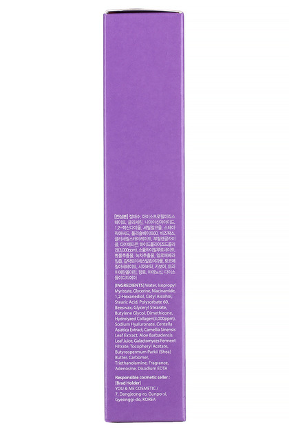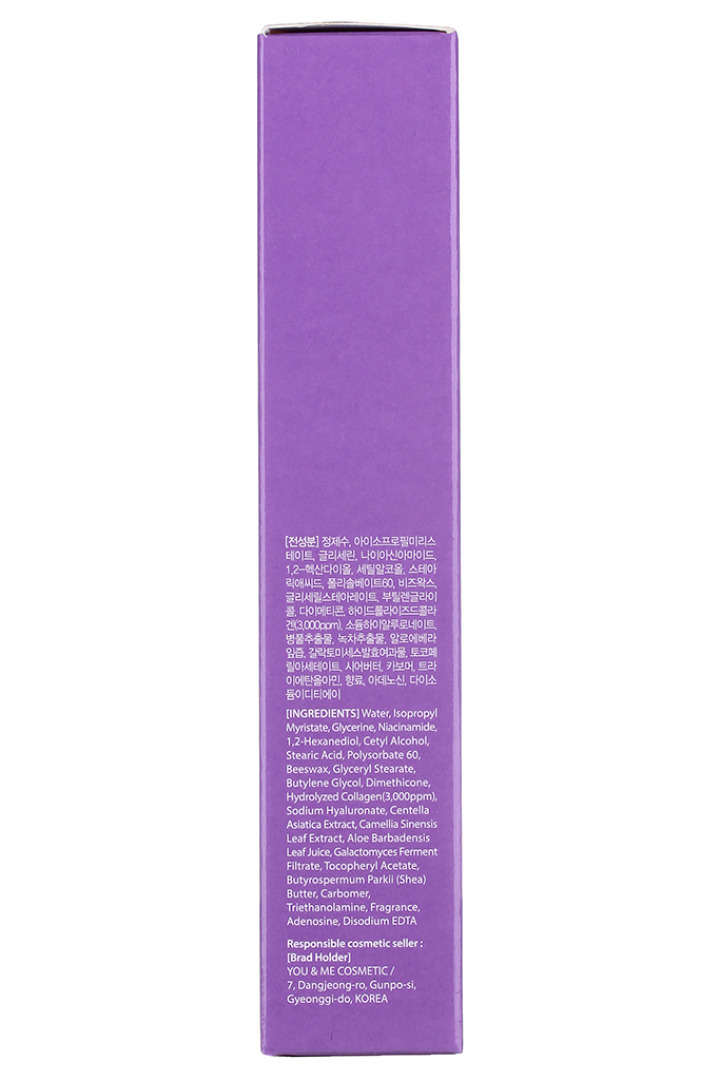 Water, Isopropyl Myristate, Glycerin, Niacinamide, 1,2-Hexanediol, Cetyl Alcohol, Stearic Acid, Polysorbate 60, Beeswax, Glyceryl Stearate, Butylene Glycol, Dimethicone, Hydrolyzed Collagen, Sodium Hyaluronate, Centella Asiatica Extract, "Camellia Sinensis Leaf Extract", Aloe Barbadensis Leaf Juice, "Galactomyces Ferment Filtrate", Tocopheryl Acetate, "Butyrospermum Parkii (Shea) Butter", Carbomer, Triethanolamine, Fragrance, Adenosine, Disodium EDTA