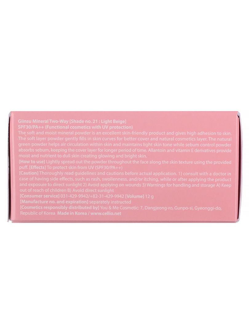 GNS PACT Пудра для лица минеральная с запасным блоком GIINSU MINERAL TWOWAY CAKE #21,12гр