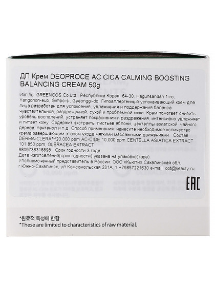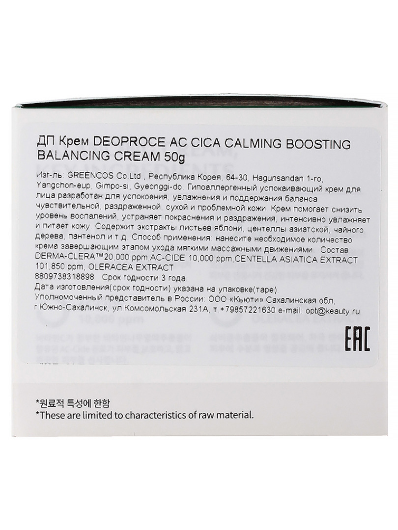 ДП AC CICA Крем для лица успокаивающий DEOPROCE AC CICA CALMING BOOSTING BALANCING CREAM 50g