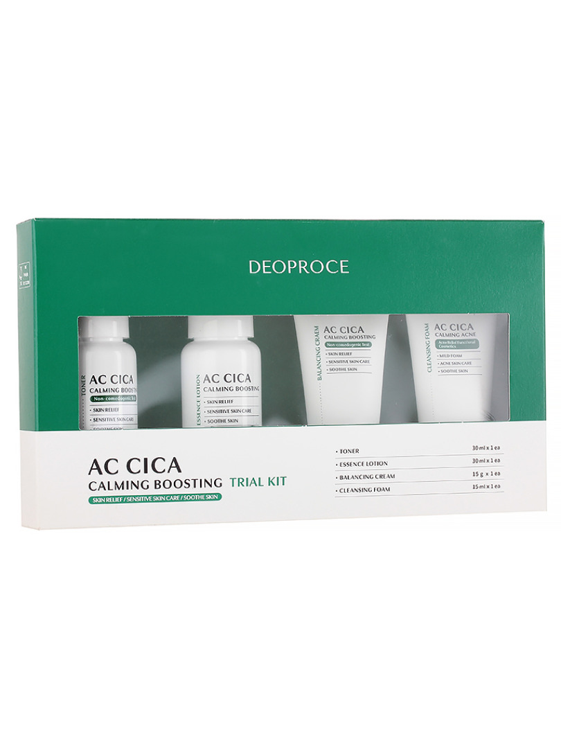 ДП AC CICA Набор для лица уходовый с экстрактом центеллы азиатской DEOPROCE AC CICA CARMING BOOSTING TRIAL KIT (тонер, лосьон, крем)