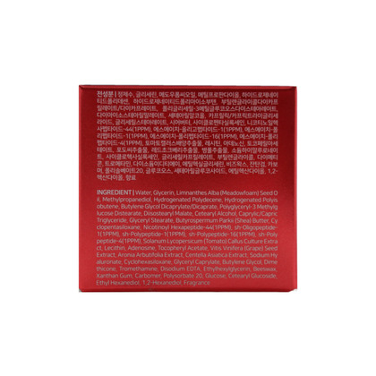 Water, Glycerin, Hydrogenated Polydecene, Hydrogenated Polyisobutene, Limnanthes Alba (Meadowfoam) Seed Oil, Methylpropanediol, Butylene Glycol Dicaprylate/Dicaprate, Polyglyceryl-3 Methylglucose Distearate, Diisostearyl Malate, Cetearyl Alcohol, Caprylic/Capric Triglyceride, Glyceryl Stearate, Butyrospermum Parkii (Shea) Butter, Cyclopentasiloxane, Cyclohexasiloxane, Beeswax, Dimethicone, Tocopheryl Acetate, Ethyl Hexanediol, Fragrance, Glyceryl Caprylate, Carbomer, Cetearyl Glucoside, Tromethamine, Adenosine, Xanthan Gum, Solanum Lycopersicum (Tomato) Callus Culture Extract, 1,2-Hexanediol, Disodium EDTA, Sodium Hyaluronate, Glucose, Butylene Glycol, Aronia Arbutifolia Extract, Centella Asiatica Extract, Ethylhexylglycerin, Nicotinoyl Hexapeptide-44, sh-Oligopeptide-1, sh-Polypeptide-1, sh-Polypeptide-16, sh-Polypeptide-4, Vitis Vinifera (Grape) Seed Extract, Polysorbate 20, Lecithin