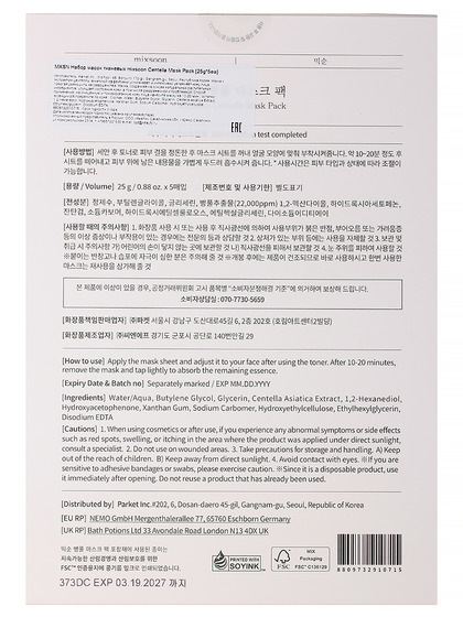 Изготовитель: Parket Inc., 3rd floor, 65, Eonju-ro 172-gil, Gangnam-gu, Seoul, Республика Корея. Маска с экстрактом центеллы азиатской эффективно успокаивает и интенсивно увлажняет кожу лица, помогая уменьшить несовершенства. Маска, созданная на основе натуральных растительных ингредиентов, улучшает состояние кожи, в том числе раздраженной и проблемной. Способ применения: на очищенную и тонизированную кожу лица нанесите маску на 10-20 мин., остатки эссенции распределите по коже.