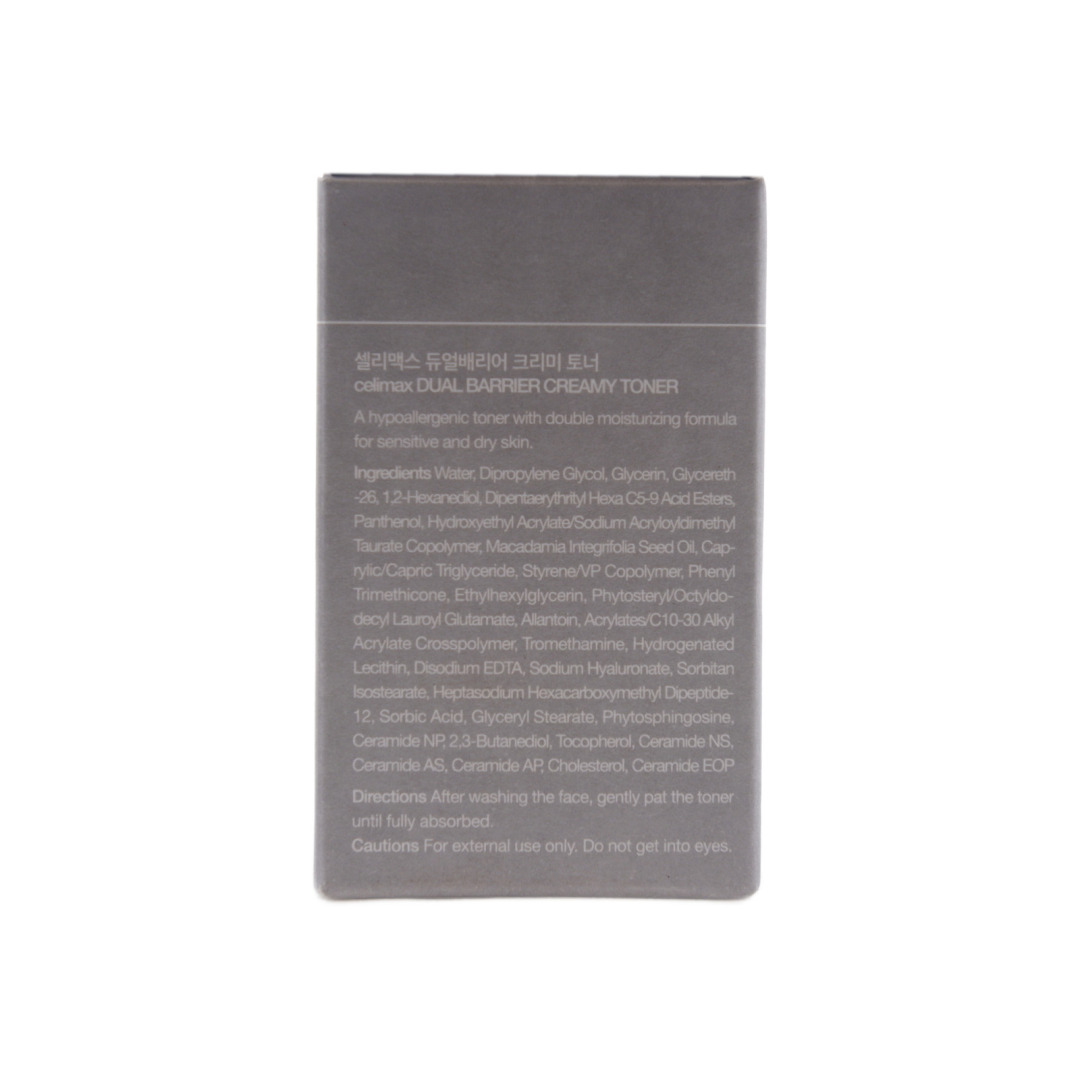 Toner: Water, Dipropylene Glycol, Glycerin, Glycereth-26, 1,2-Hexanediol, Dipentaerythrityl Hexa C5-9 Acid Esters, Panthenol, Hydroxyethyl Acrylate/Sodium Acryloyldimethyl Taurate Copolymer, Macadamia Integrifolia Seed Oil, Caprylic/Capric Triglyceride, Styrene/VP Copolymer, Phenyl Trimethicone, Ethylhexylglycerin, Phytosteryl/Octyldodecyl Lauroyl Glutamate, Allantoin, Acrylates/C10-30 Alkyl Acrylate Crosspolymer, Tromethamine, Hydrogenated Lecithin, Disodium EDTA, Sodium Hyaluronate, Sorbitan Isostearate, Heptasodium Hexacarboxymethyl Dipeptide-12, Sorbic Acid, Glyceryl Stearate, Phytosphingosine, Ceramide NP, 2,3-Butanediol, Tocopherol, Ceramide NS, Ceramide AS, Ceramide AP, Cholesterol, Ceramide EOP. Cream: Water, Glycerin, Caprylic/Capric Triglyceride, Butylene Glycol, Propanediol, Stearic Acid, Cetearyl Alcohol, Methyl Trimethicone, Caprylyl Methicone, 1,2-Hexanediol, C12-16 alcohols, Panthenol, Olea Europaea (Olive) Fruit Oil, Hydrogenated Lecithin, Glyceryl Stearate, Palmitic acid, Cetearyl Glucoside, Ceramide NP, Carbomer, Tromethamine, Allantoin, Xanthan Gum, Tocopherol, Ethylhexylglycerin, Dipropylene Glycol, Disodium EDTA, Pantolactone, Sodium Hyaluronate, Heptasodium Hexacarboxymethyl Dipeptide-12, Malt Extract, Ceramide NS, Phytosphingosine, Cholesterol, Ceramide AS, Ceramide AP, Ceramide EOP
