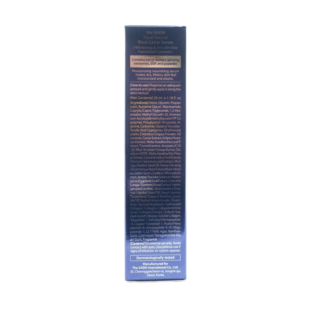 Изг-ль: THE SAEM INTERNATIONAL CO.LTD., КОРЕЯ, РЕСПУБЛИКА, 10F, 35, Cheonggyecheon-ro, Jongno-gu, Seoul. Royal Natural Black Caviar Serum. Премиальная сыворотка с инновационной системой экзосом для омоложения и восстановления упругости кожи.