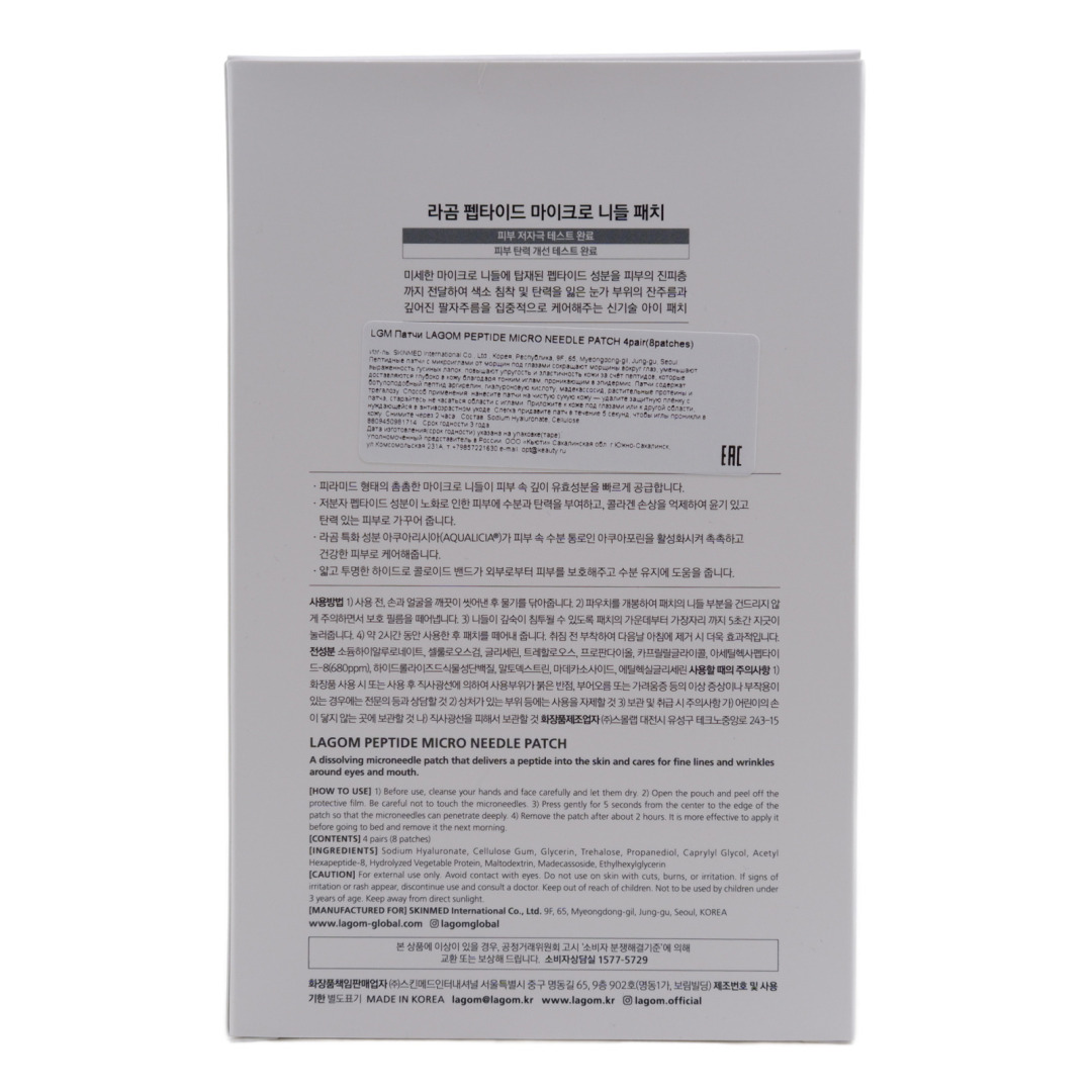 LGM PATCH Патчи для кожи вокруг глаз с микроиглами LAGOM PEPTIDE MICRO NEEDLE PATCH 4pair (8patches)