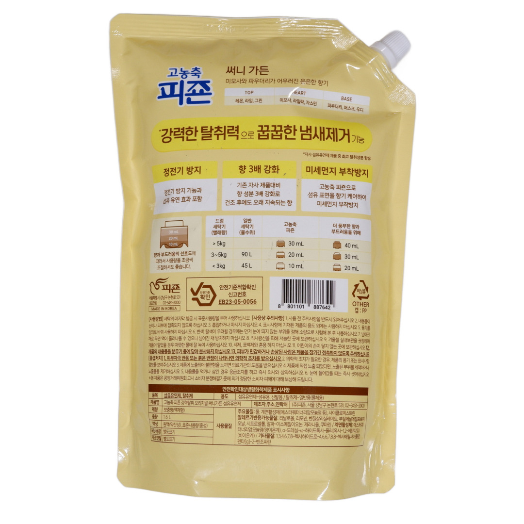 Изг-ль: PIGEON CORPORATION, КОРЕЯ, РЕСПУБЛИКА, 628-13, Yoksam-dong, Kangnam-ku, Seul, 135-080. Кондиционер-концентрат с богатым и стойким ароматом предназначен для хлопка, льна, шерсти, синтетических тканей и стиральных машин активаторного и барабанного типов. Особая высококонцентрированная формула с аромакапсулами размером 1/1000 мм эффективно нейтрализует неприятный запах. Способ применения: при ручной стирке из расчета: на каждые 15 л воды 10 мл кондиционера. Для автоматических машин: 10 мл средства на 3 кг белья; 20 мл - 5 кг; 30 мл - свыше 5 кг.