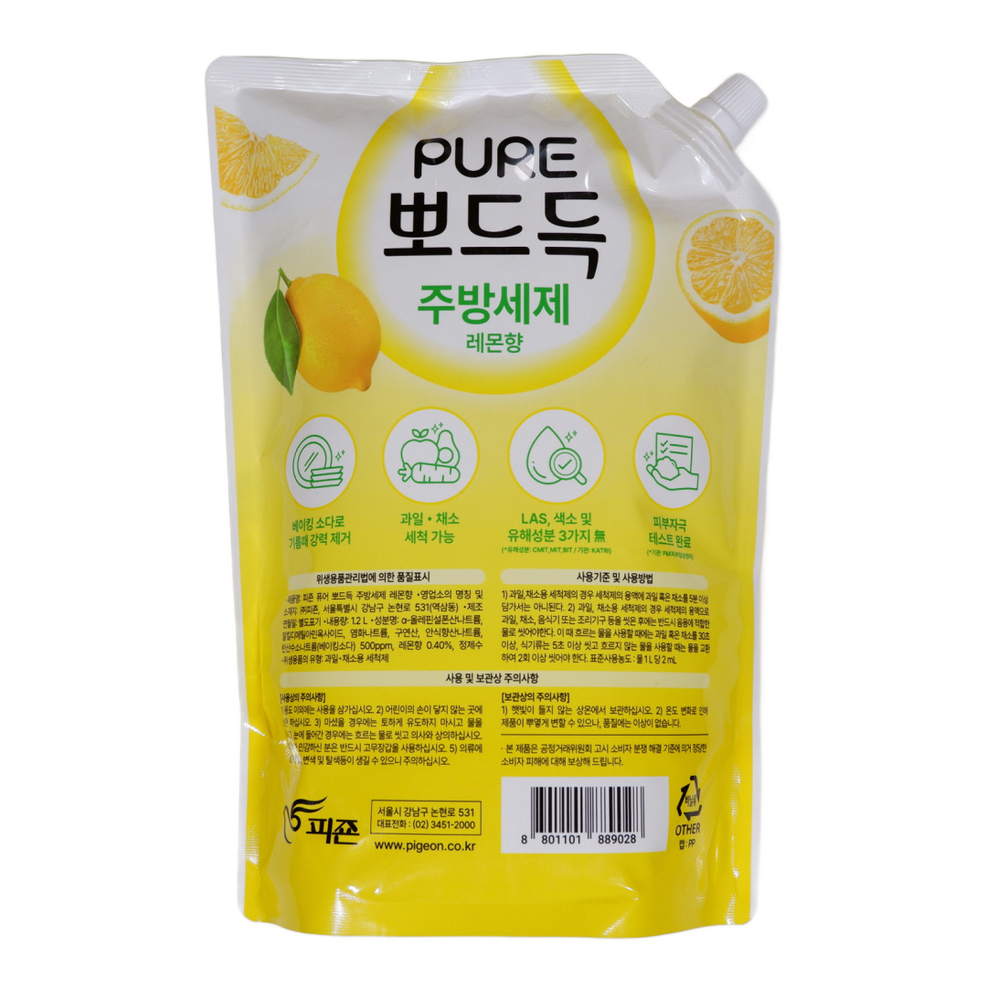 Изг-ль: PIGEON CORPORATION, КОРЕЯ, РЕСПУБЛИКА, 628-13, Yoksam-dong, Kangnam-ku, Seul, 135-080. Средство эффективно справляется с любыми пищевыми загрязнениями, включая жир от мяса и рыбы, а также следов жарки еды. Предназначено для мытья посуды, в том числе детской, а также овощей, фруктов и прочих кухонных принадлежностей. Средство обладает ярким освежающим ароматом лимона, который сделает процесс мытья посуды приятным. Содержит натуральный компоненты, включая пищевую соду, которая великолепно очищает посуду. Способ применения: нанести небольшое количество жидкости на губку, намылить посуду и смыть.