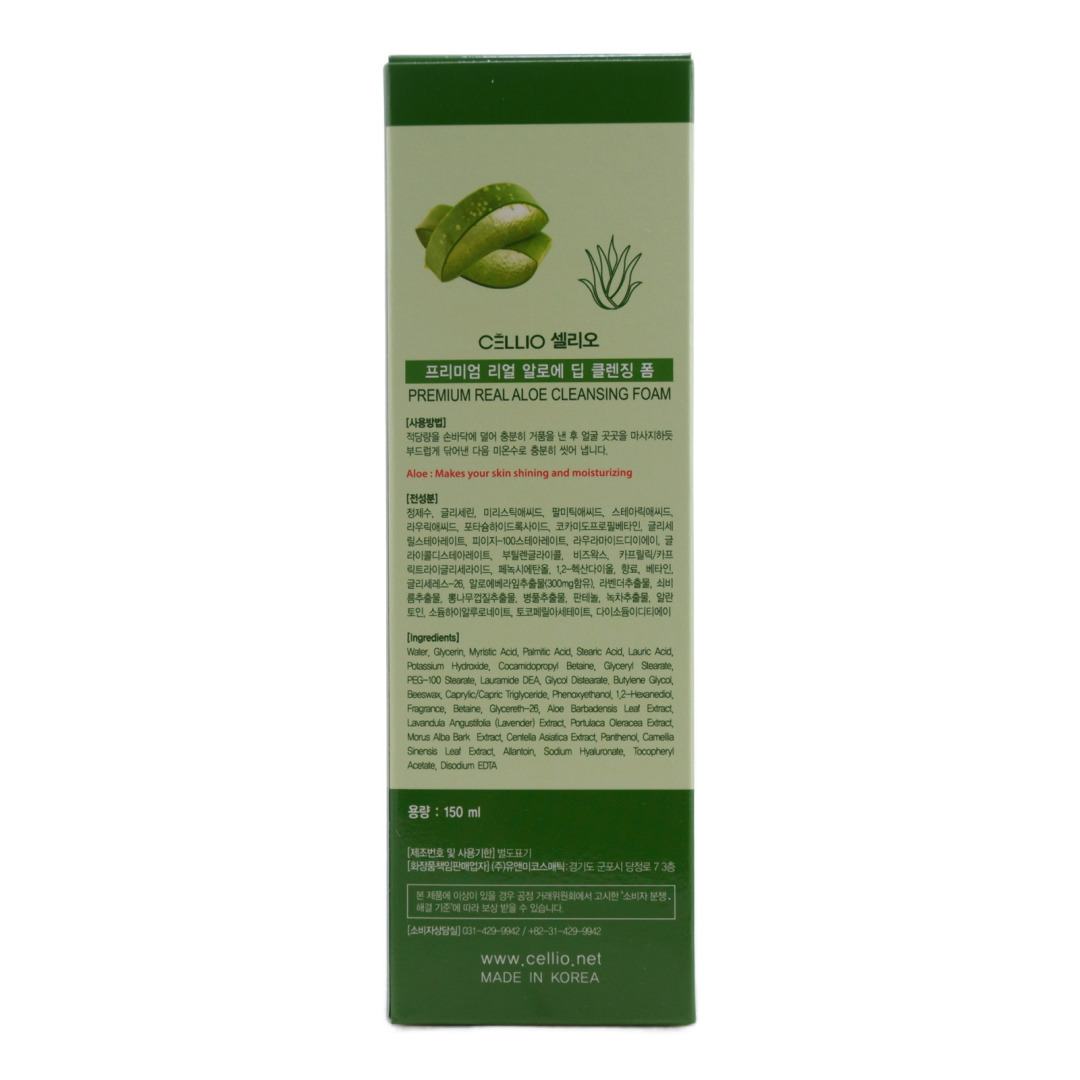 CELL FOAM Пенка для лица очищающая с алоэ вера CELLIO PREMIUM REAL ALOE DEEP CLEANSING FOAM,150мл