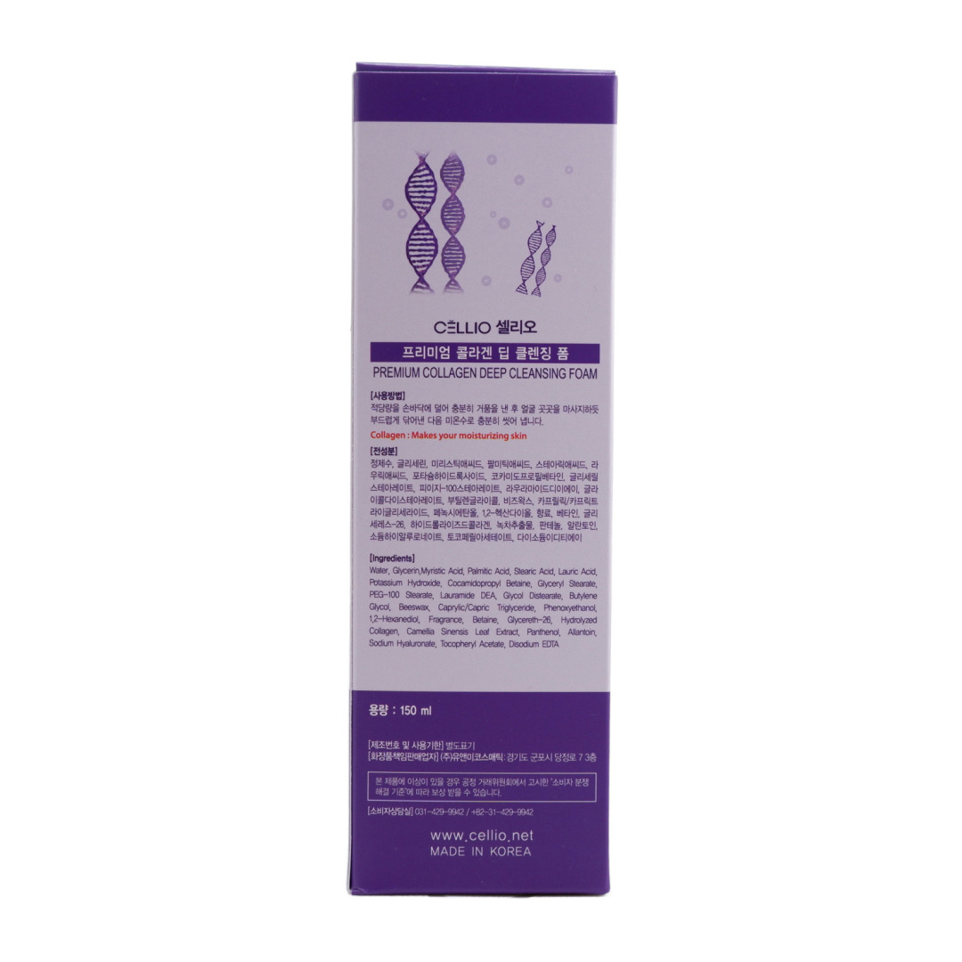 CELL FOAM Пенка для лица очищающая с коллагеном CELLIO PREMIUM COLLAGEN DEEP CLEANSING FOAM,150мл